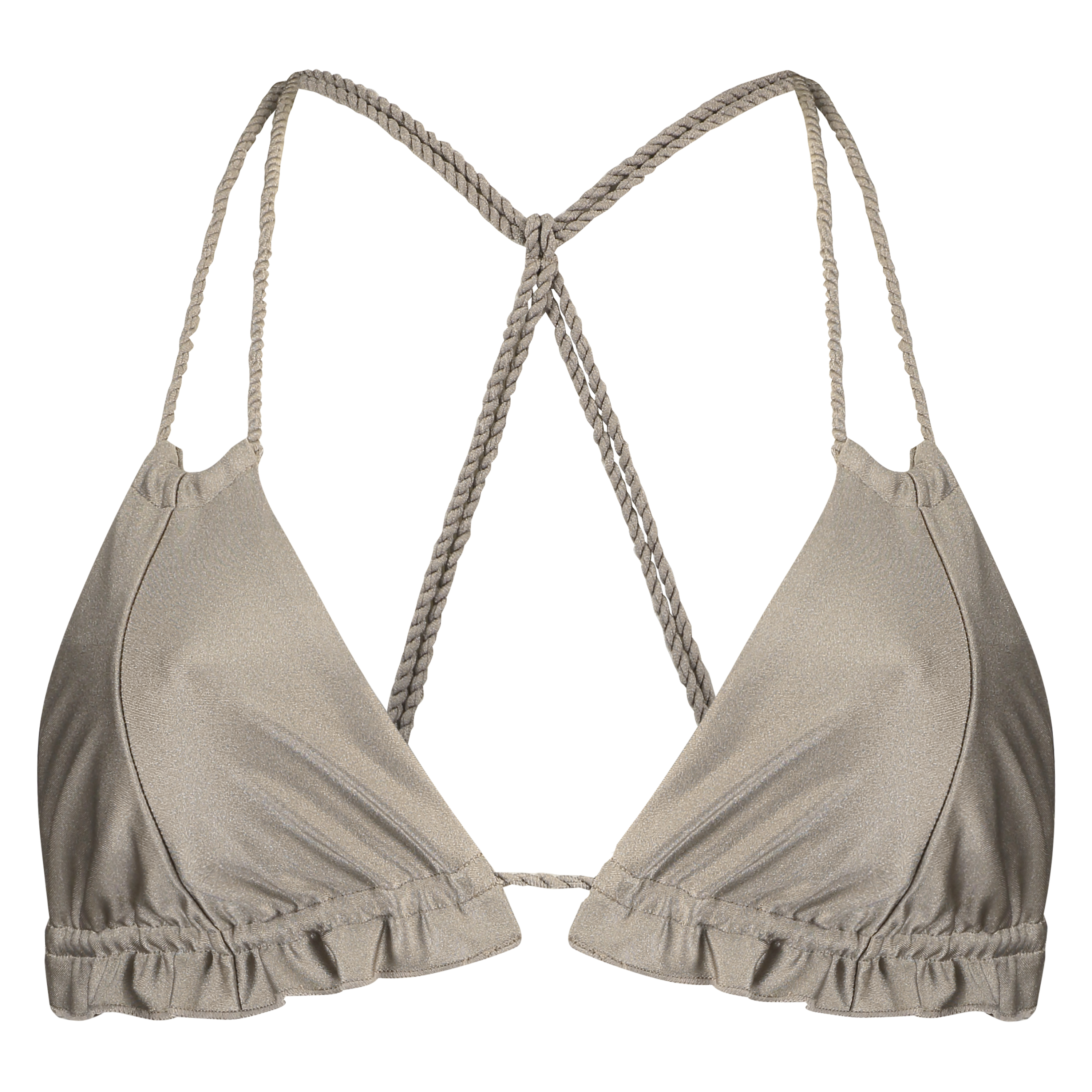 Denne triangle bikinitop er virkelig en must have! Toppen kan justeres ved hjælp af stropperne på ryggen, og langs undersiden af skålene er flotte flæser. Kombinér med matchende items og flotte strand-accessories for et komplet sæt!