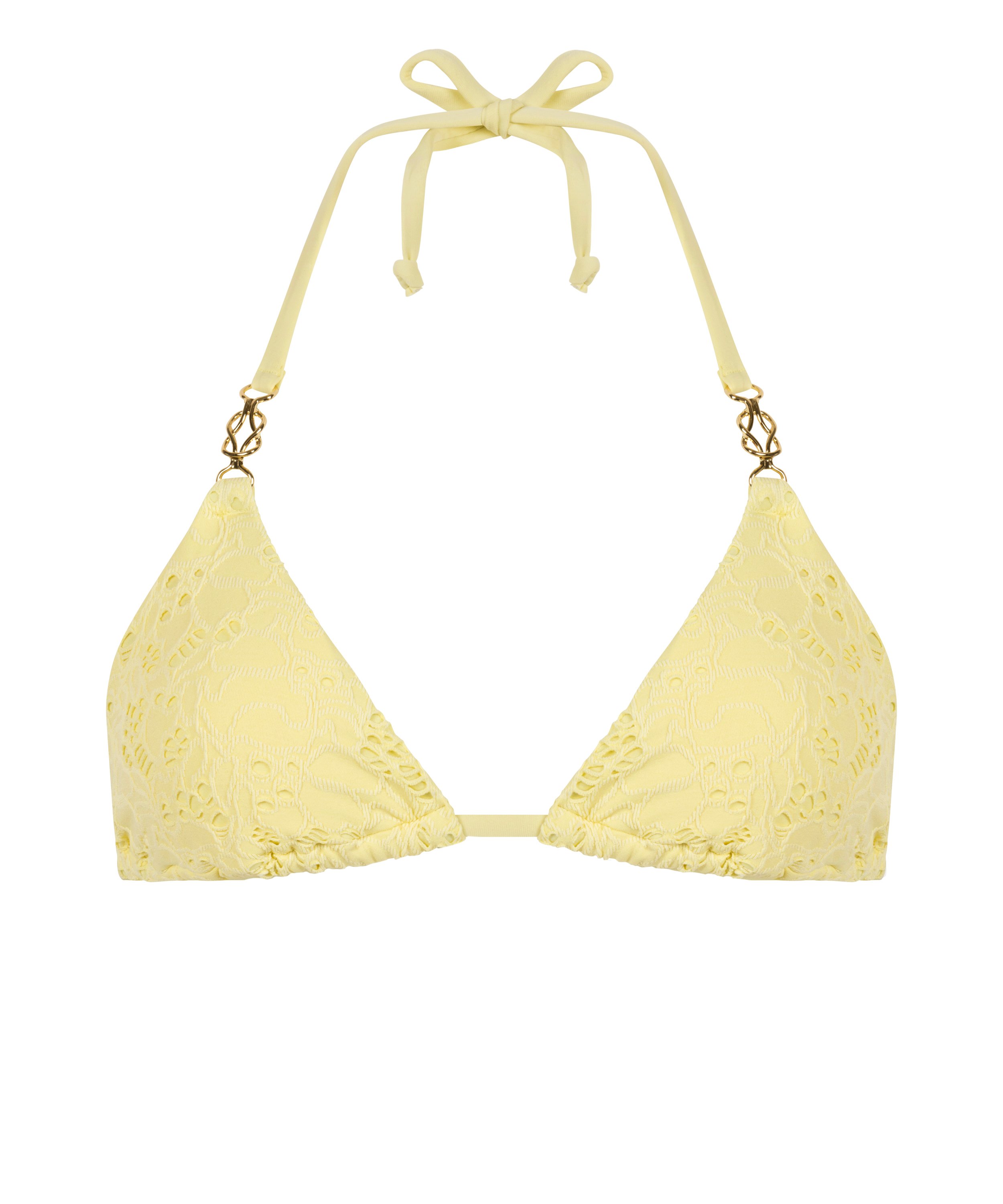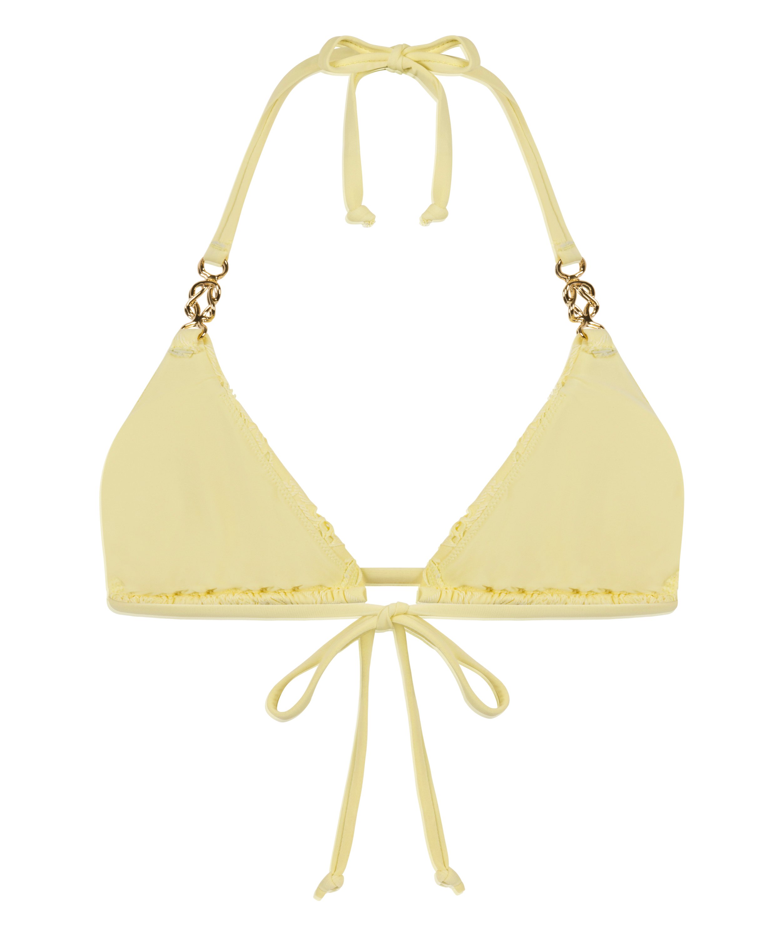 Du kommer i sommerstemning med det samme i denne bikinitop! Kombiner dem med flot tilbehør som en hat, så er du klar til din strandferie. Vores trekants-bikinier er fuldt justerbare med bindebånd i nakken og på ryggen, så du kan vælge den ønskede dækning. Ønsker du mere dækning, så prøv en størrelse større.