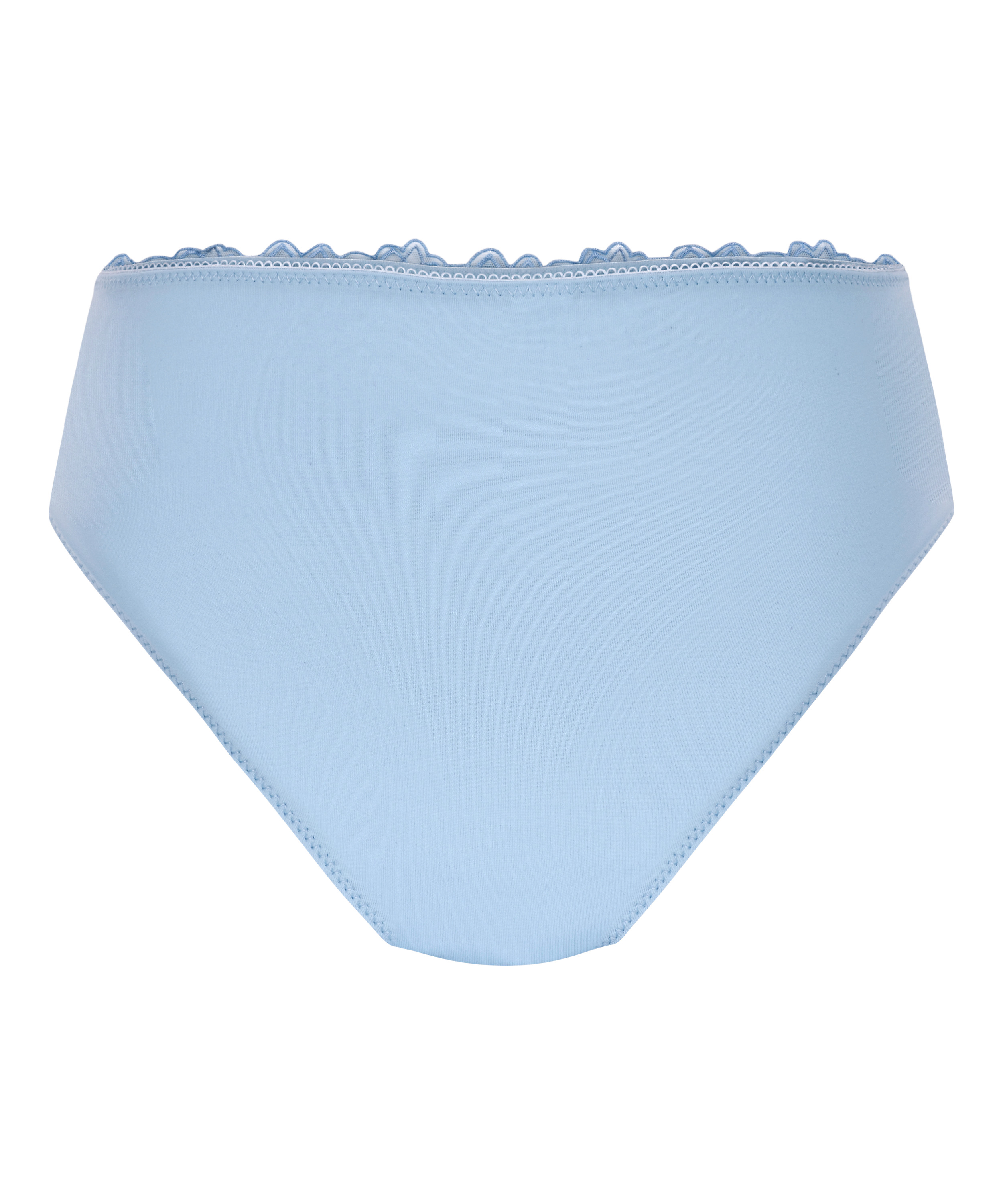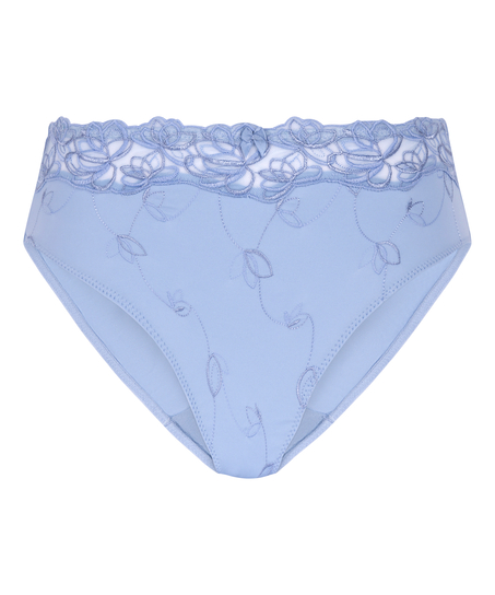 Høj trusse i et blødt og fleksibelt materiale, der giver en flot pasform. Trussen har blomsterbroderi og en lille sløjfe på forstykket.
