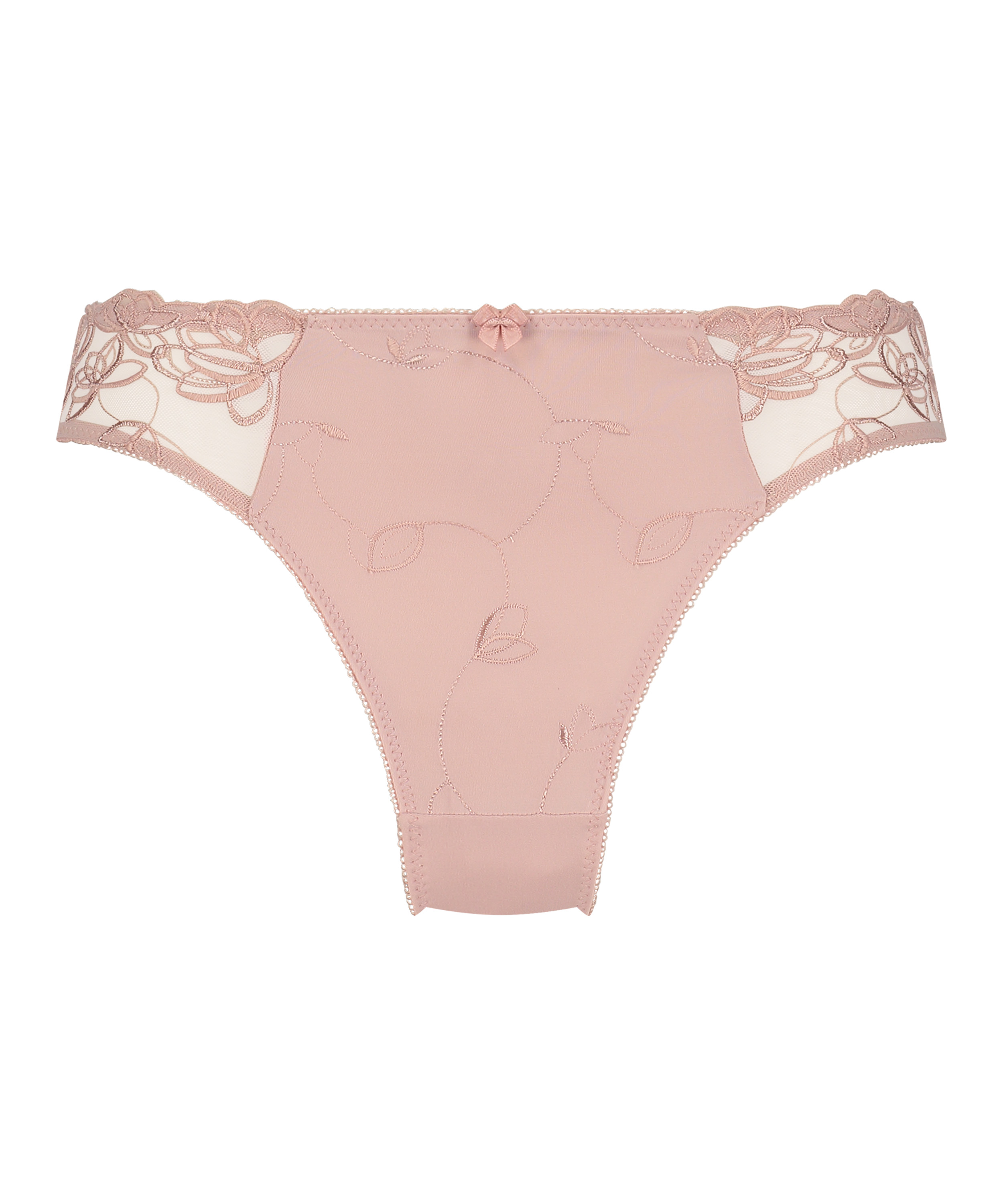 Trusse i et blødt og fleksibelt materiale, der giver en flot pasform. Trussen har blomsterbroderi og en lille sløjfe på forstykket.