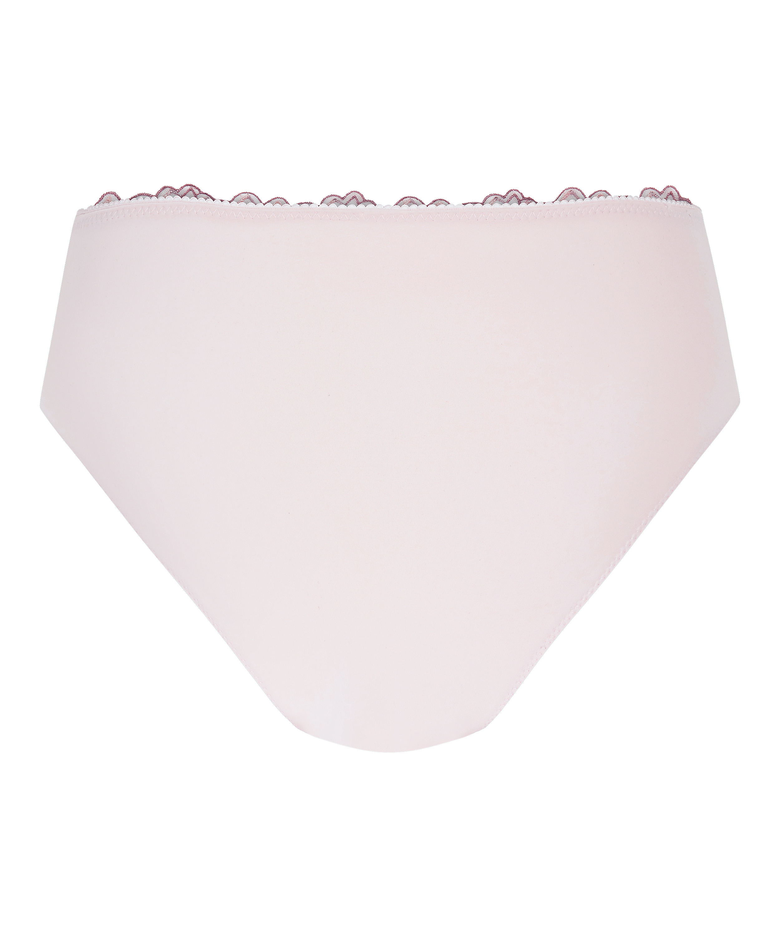 Høj trusse i et blødt og fleksibelt materiale, der giver en flot pasform. Trussen har blomsterbroderi og en lille sløjfe på forstykket.