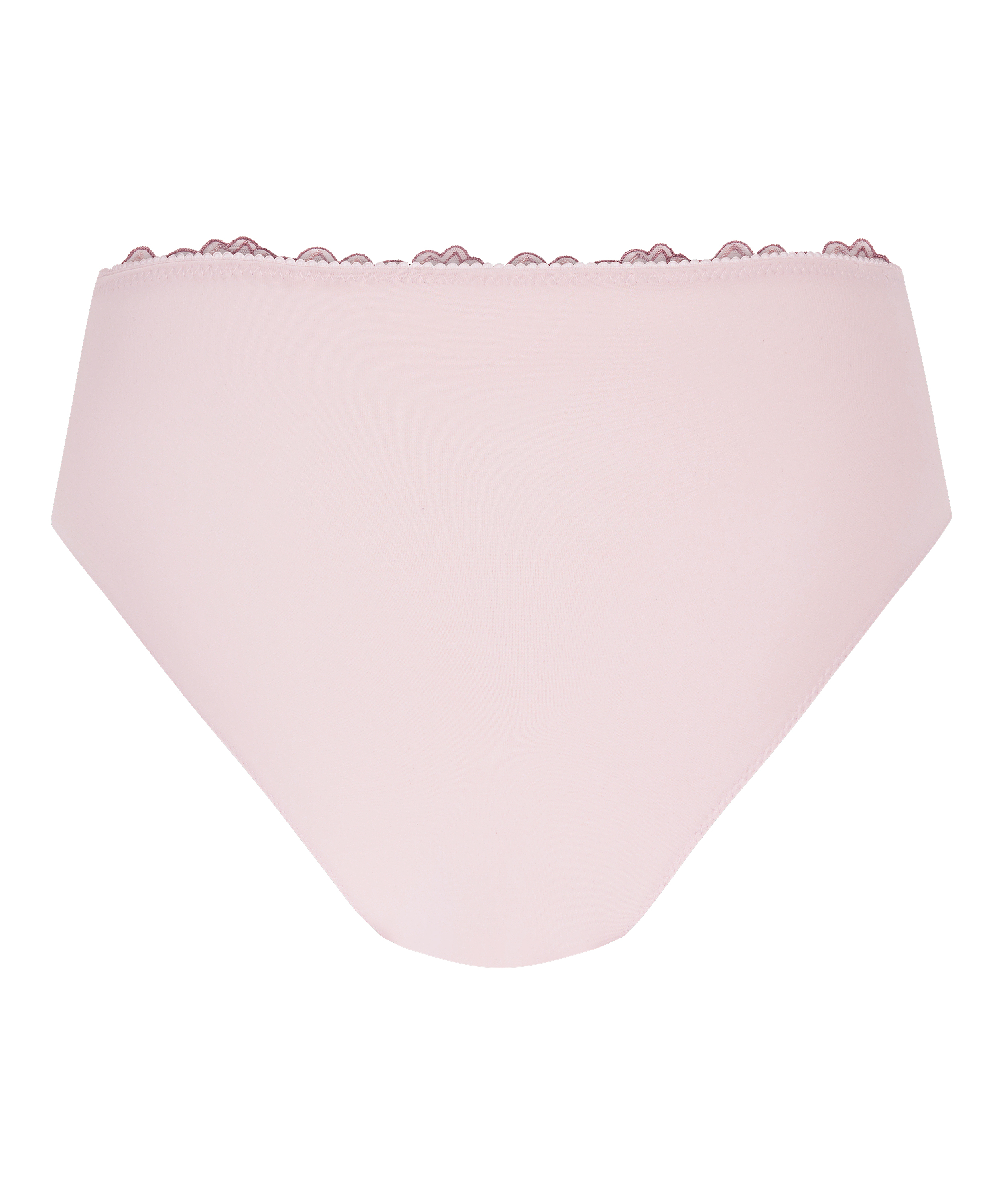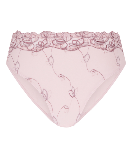 Høj trusse i et blødt og fleksibelt materiale, der giver en flot pasform. Trussen har blomsterbroderi og en lille sløjfe på forstykket.