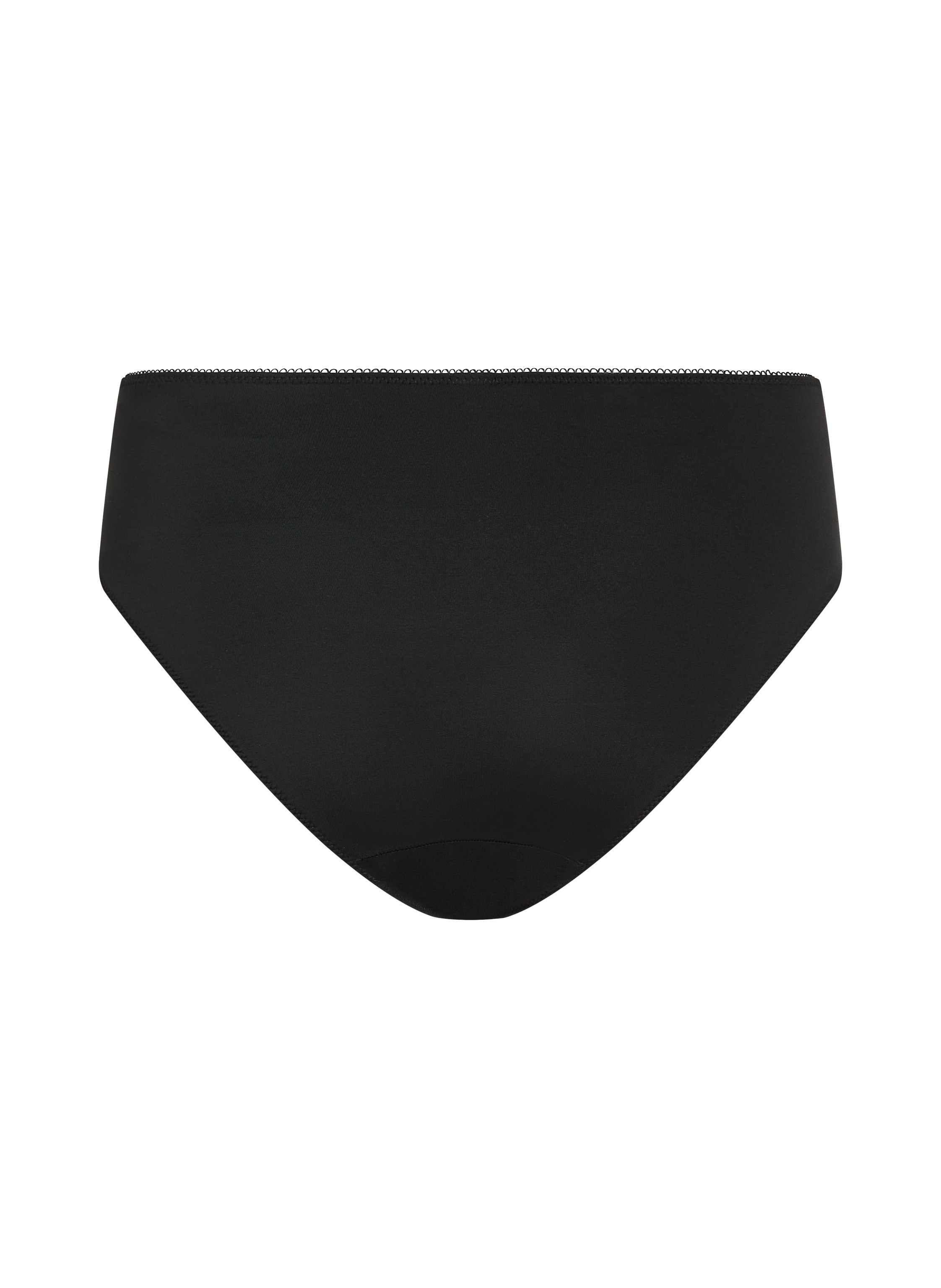 Høj trusse i et blødt og fleksibelt materiale, der giver en flot pasform. Trussen har blomsterbroderi og en lille sløjfe på forstykket.