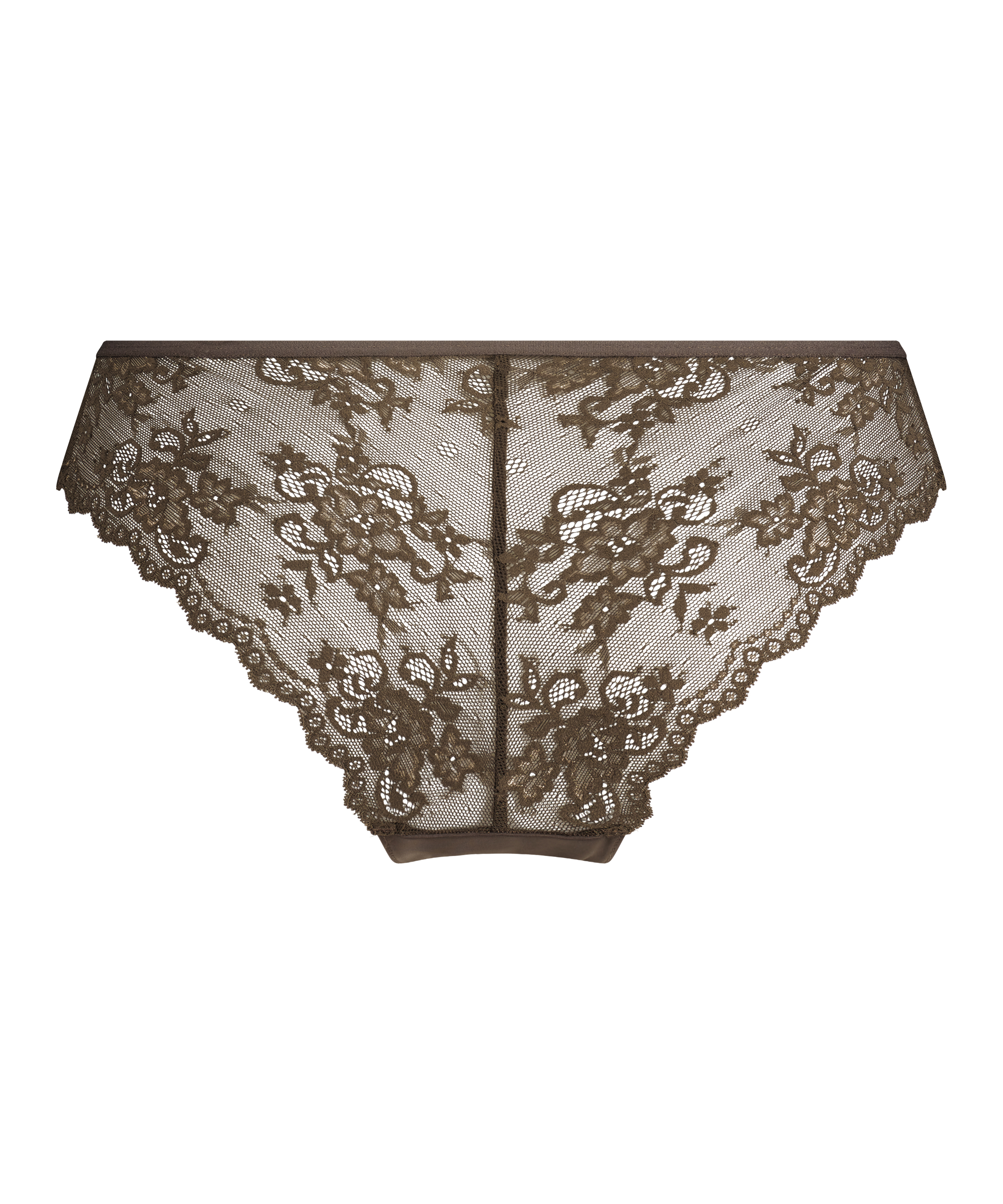 Denne brasilianske trusse er sømløs og kan ikke ses under stramt tøj. Bagstykket i blondestof giver en sexet udstråling.