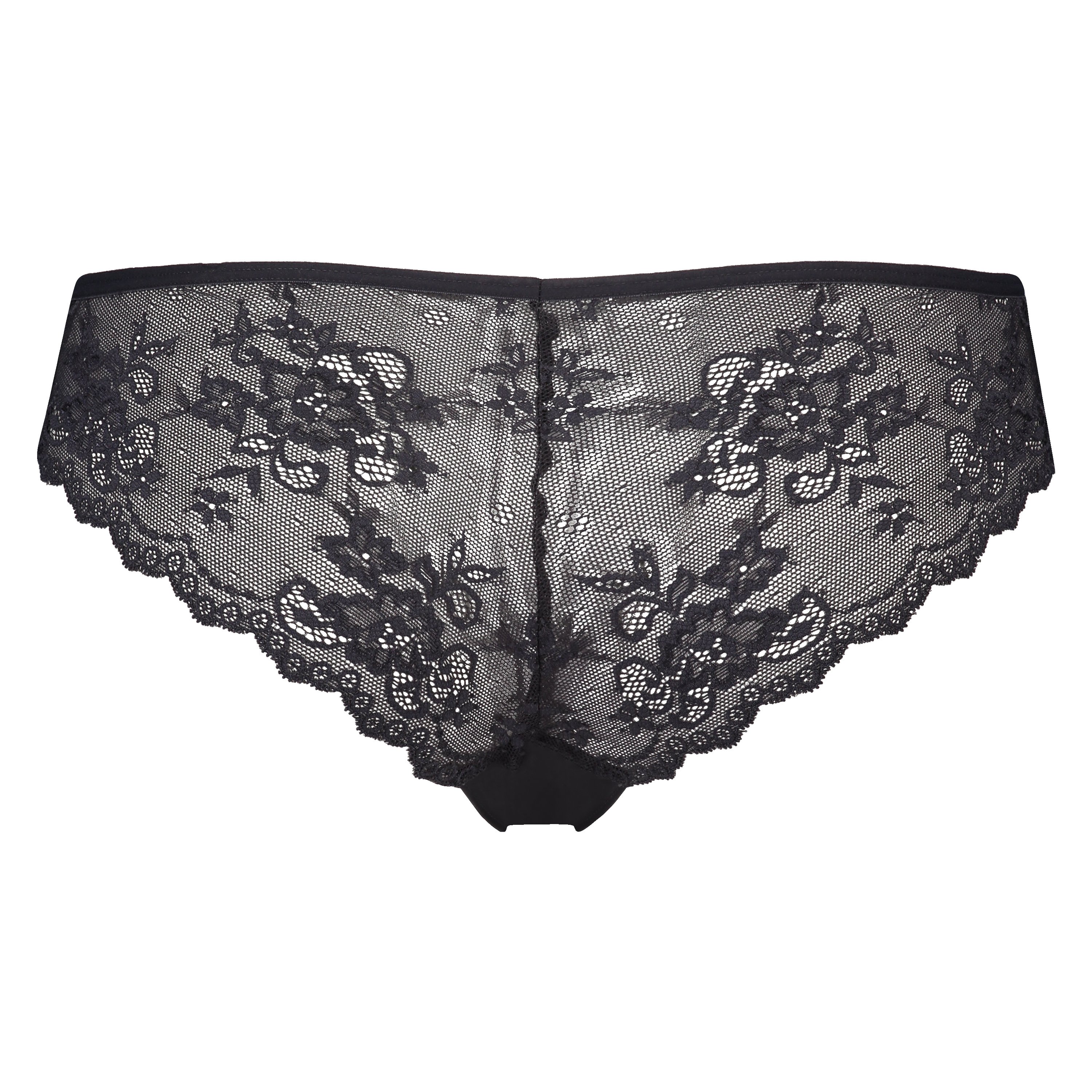 Denne brasilianske trusse er sømløs og kan ikke ses under stramt tøj. Bagstykket i blondestof giver en sexet udstråling.