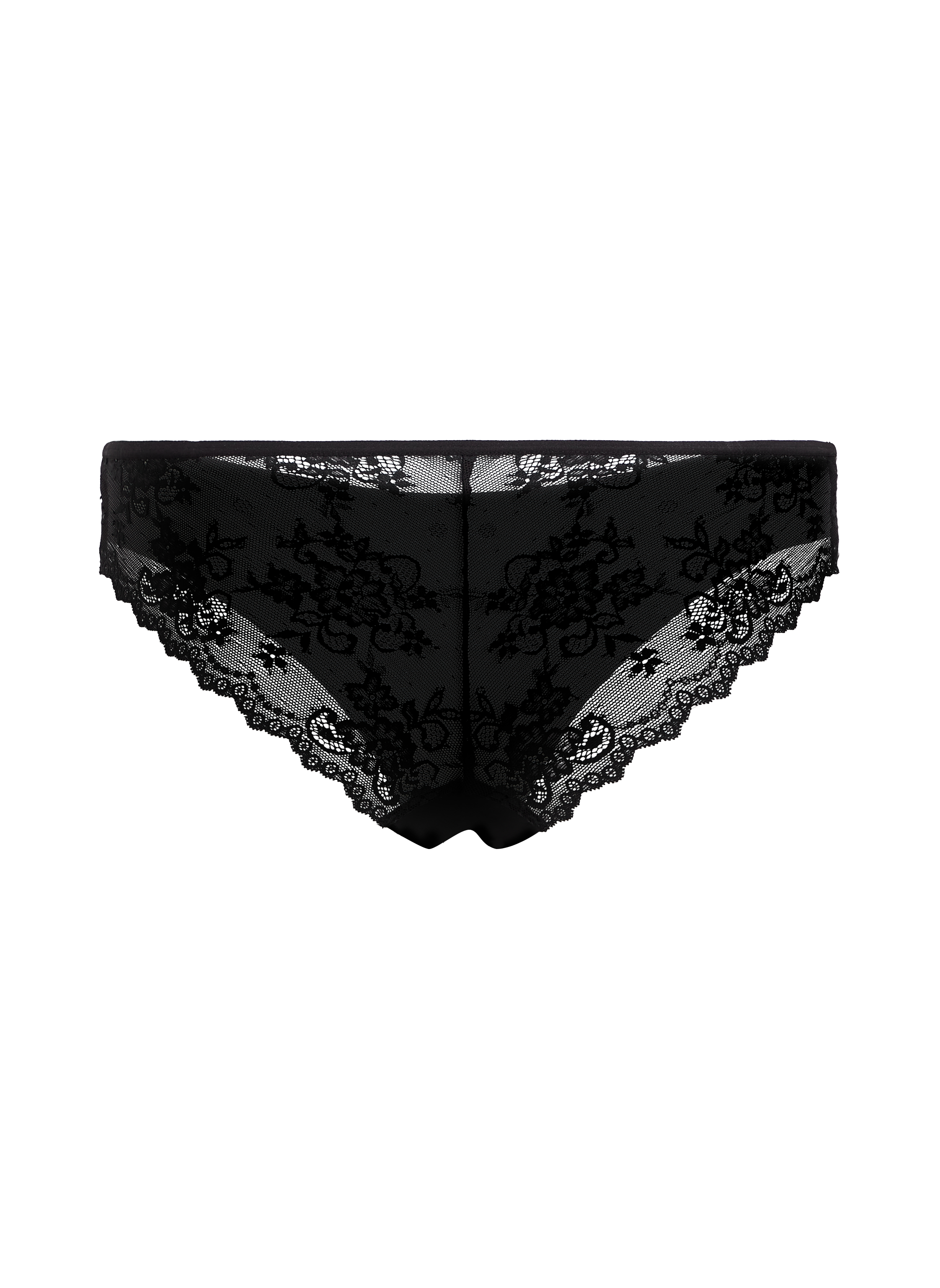 Denne brasilianske trusse er sømløs og kan ikke ses under stramt tøj. Bagstykket i blondestof giver en sexet udstråling.