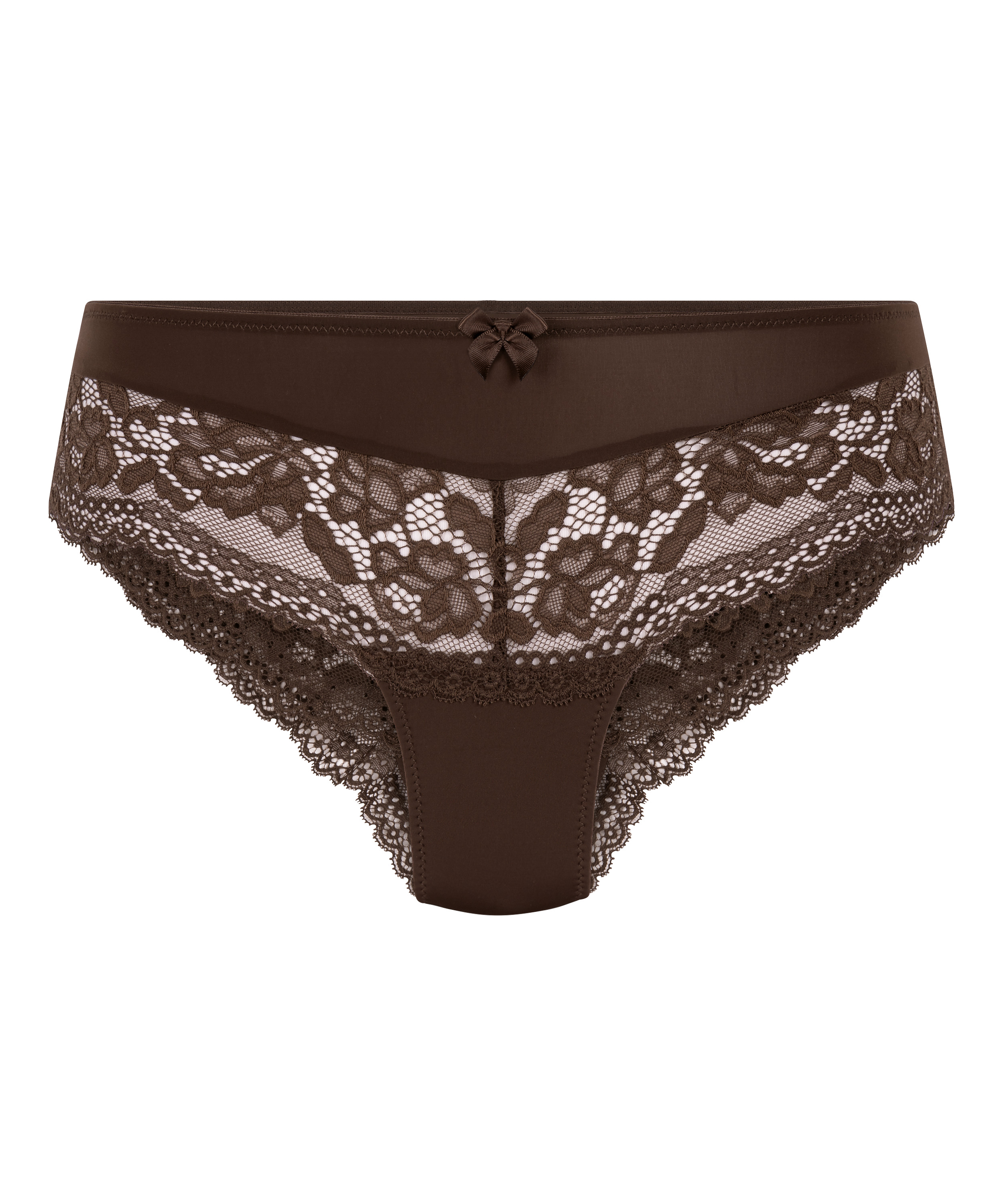 Vælg komfort med disse smukke brasilianske trusser. De brasilianske trusser er pyntet med blonder og en lille sløjfe foran. Du kan kombinere disse trusser med mange ting, så de er et must-have i din samling! Det superkomfortable must, føles ny og bedre på hånden og er ekstremt blød og strækbar. Med smukke blomsterblonder, der gør stilen ekstra moderne.