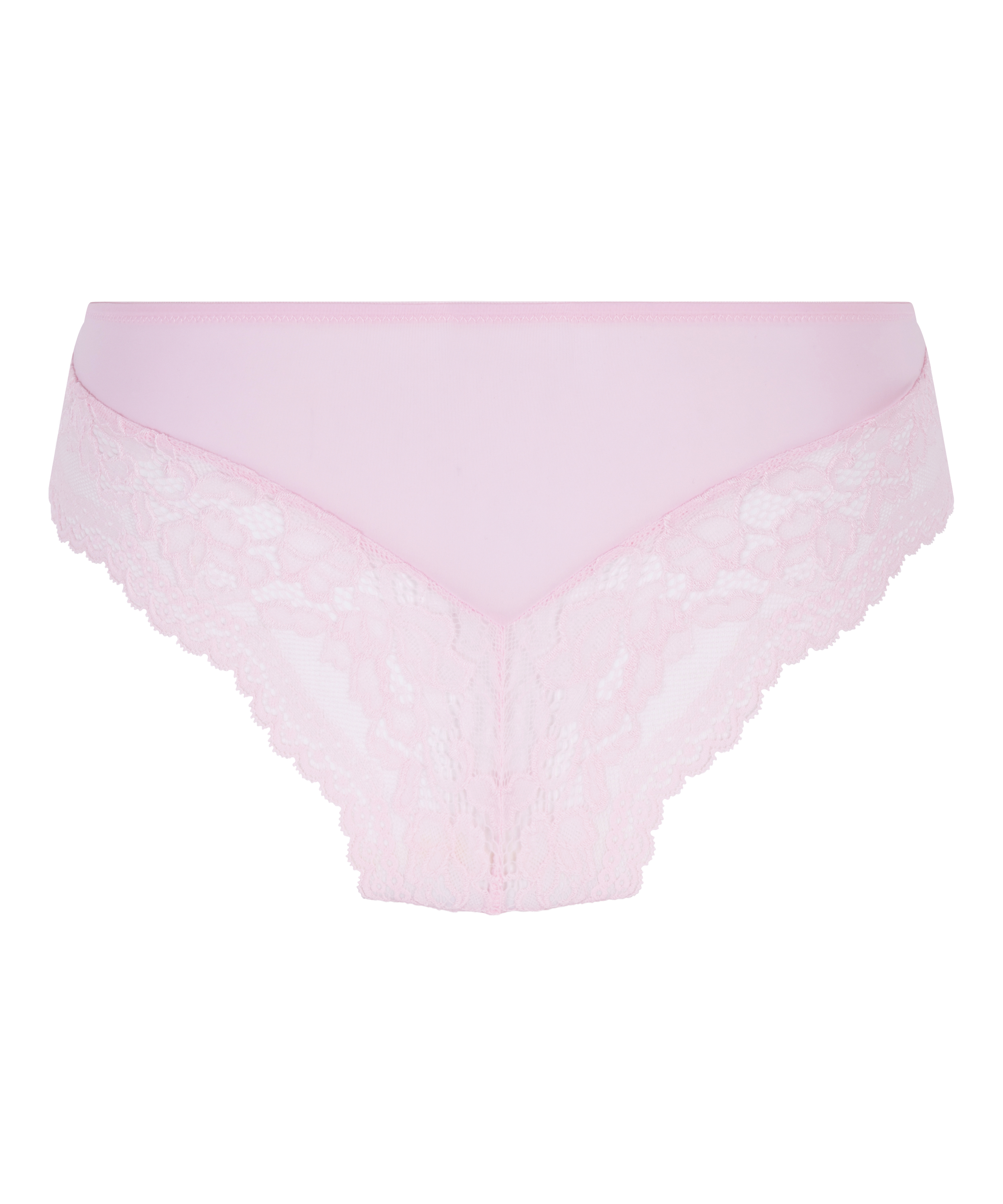 Vælg komfort med disse smukke brasilianske trusser. De brasilianske trusser er pyntet med blonder og en lille sløjfe foran. Du kan kombinere disse trusser med mange ting, så de er et must-have i din samling! Det superkomfortable must, føles ny og bedre på hånden og er ekstremt blød og strækbar. Med smukke blomsterblonder, der gør stilen ekstra moderne.