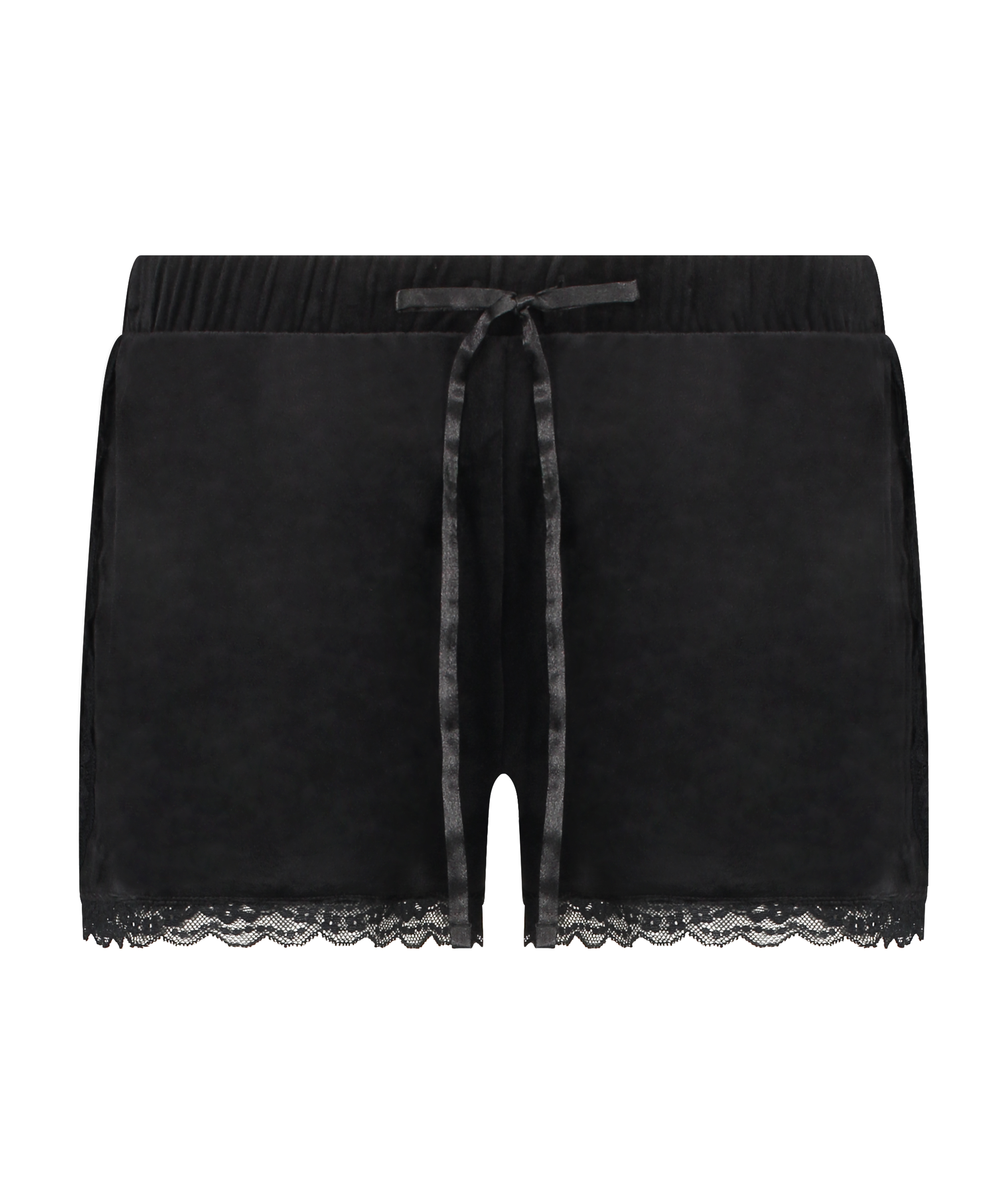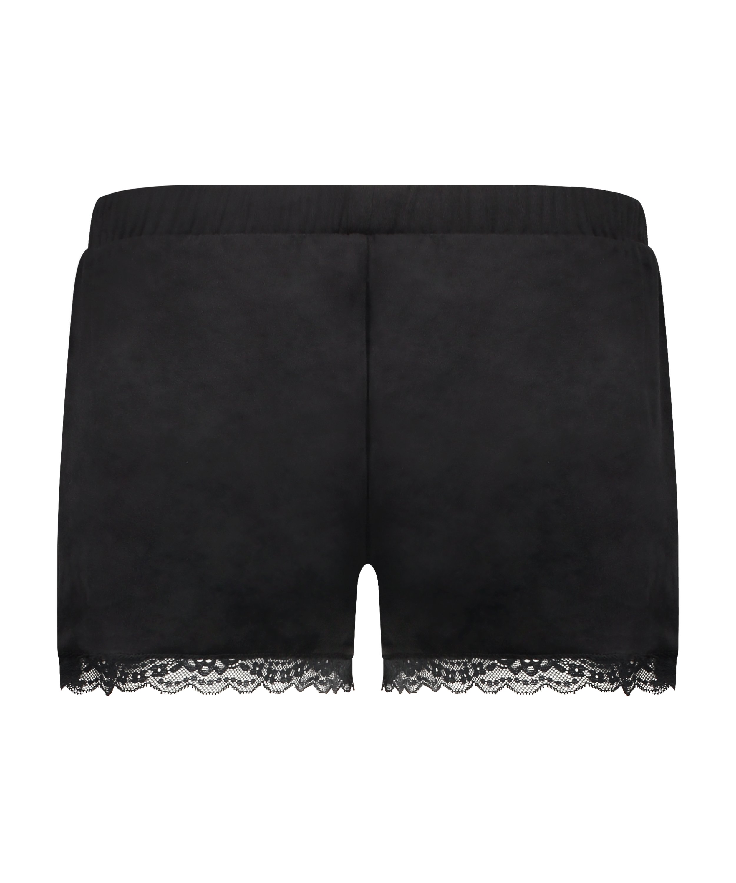 Føl dig supersexet og feminin med disse bløde shorts! Shortsene er fremstillet af velourstof og har frække blondedetaljer. Kombiner dem med matchende dele.