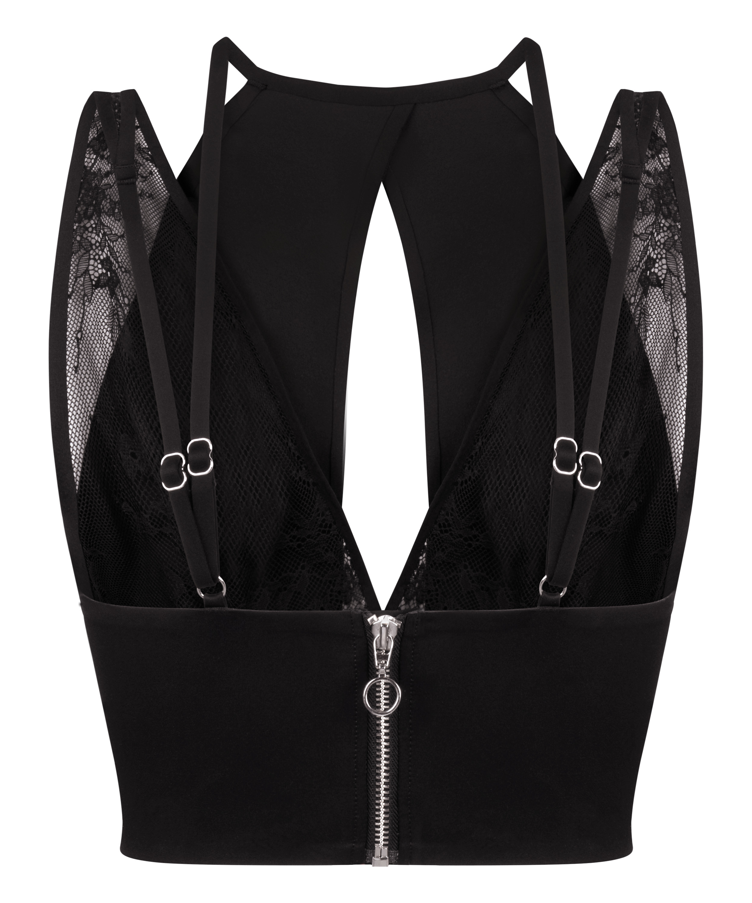 Drømmer du om det problemfri look? Så der denne bralette perfekt til dig! Den er lavet af blødt stof kombineret med et strejf af blonder for at gøre dit outfit endnu mere elegant, mens udskæringsdetaljen foran vil gøre det en smule legende. Du får helt sikkert god støtte takket være de dobbelte skulderstropper og lynlåslukningen. Kombiner den med de matchende trusser for et IT-pige-look.